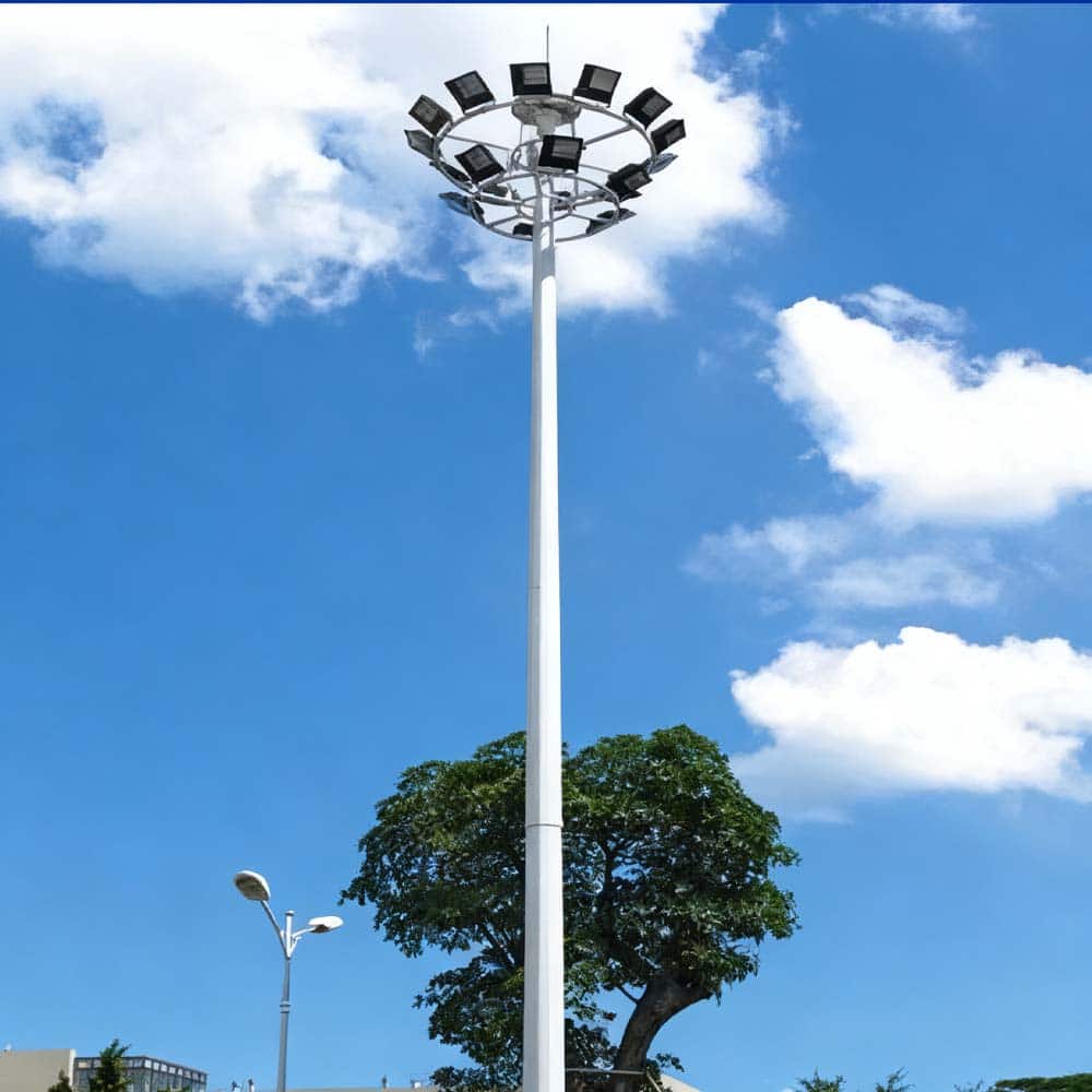 The high mast lamp is constructed from premium Q345B carbon steel, treated with hot-dip galvanizing and weather-resistant powder coating for superior durability against harsh climates and corrosive conditions. It supports light source power options ranging from 400W to 2000W, with adjustable color temperatures from warm 2700K to cool 6500K. The LED version offers a color rendering index of Ra ≥ 70, delivering both energy efficiency and comfortable, high-quality illumination.